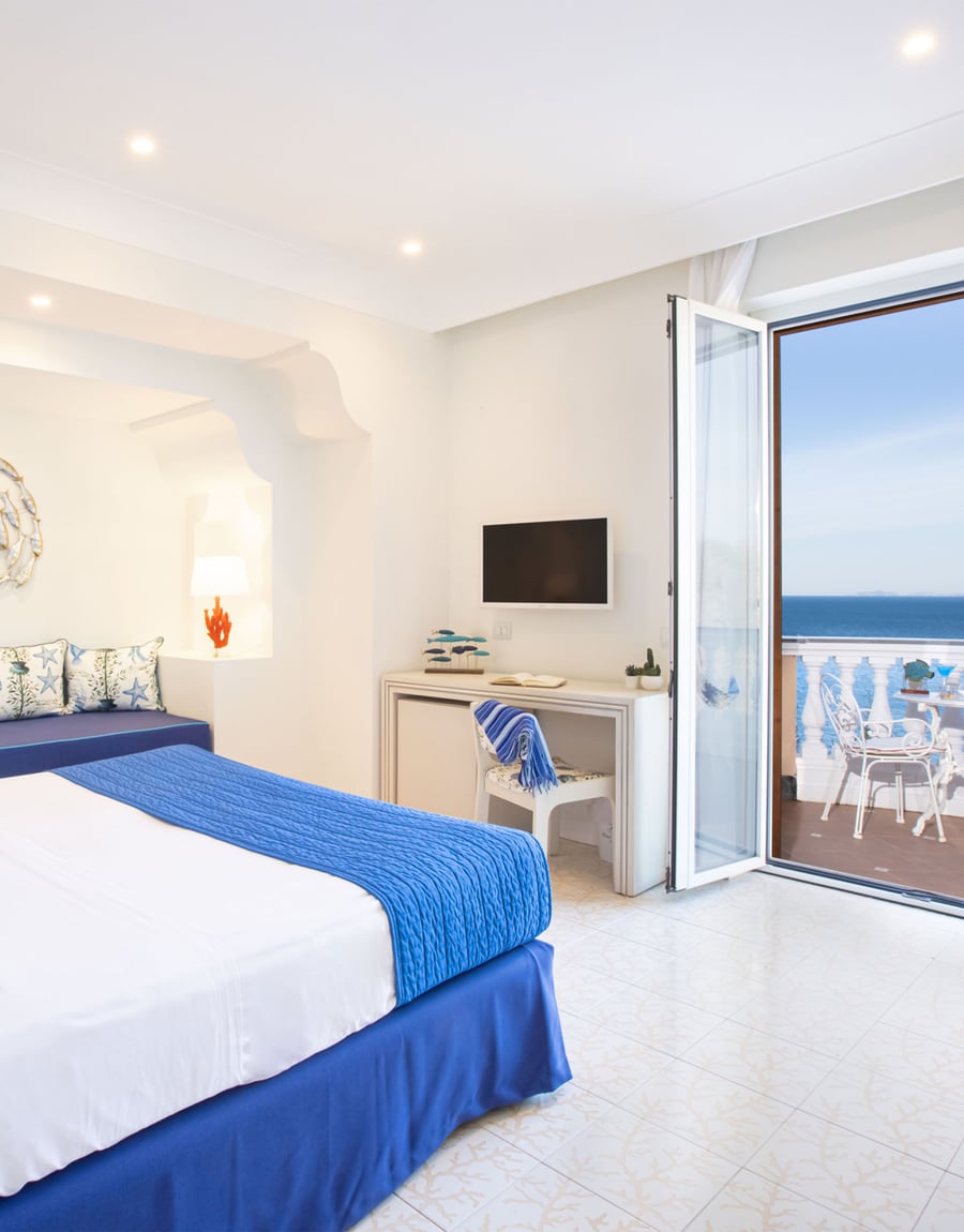 I ricercati arredi artigianali, le splendide maioliche di Vietri sul Mare e l’eccezionale vista sul Golfo di Napoli: le nostre camere ti faranno innamorare al primo sguardo.